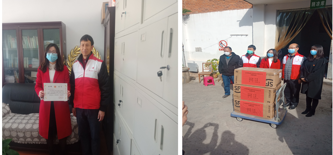 4.2020年2月9日,公司將醫(yī)院緊缺的防護服、隔離服等價值2.5萬元的防護物資捐贈到巍山縣紅十字會。